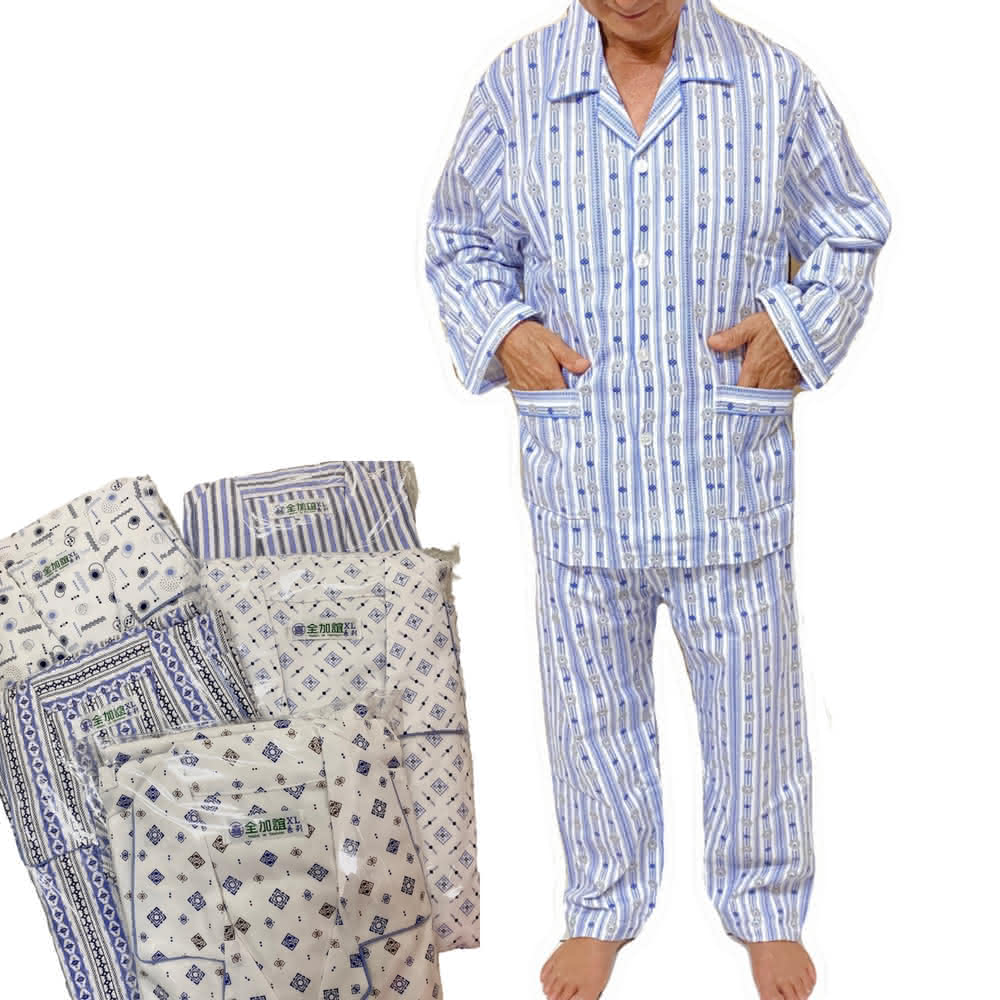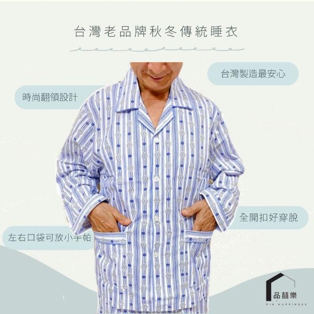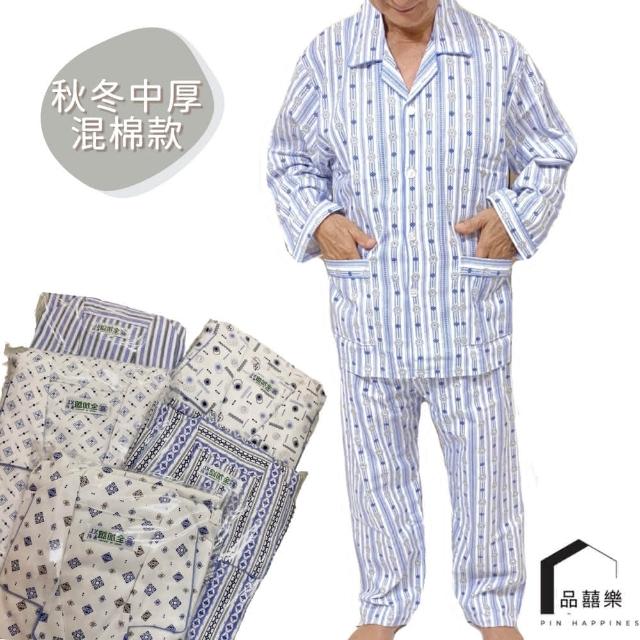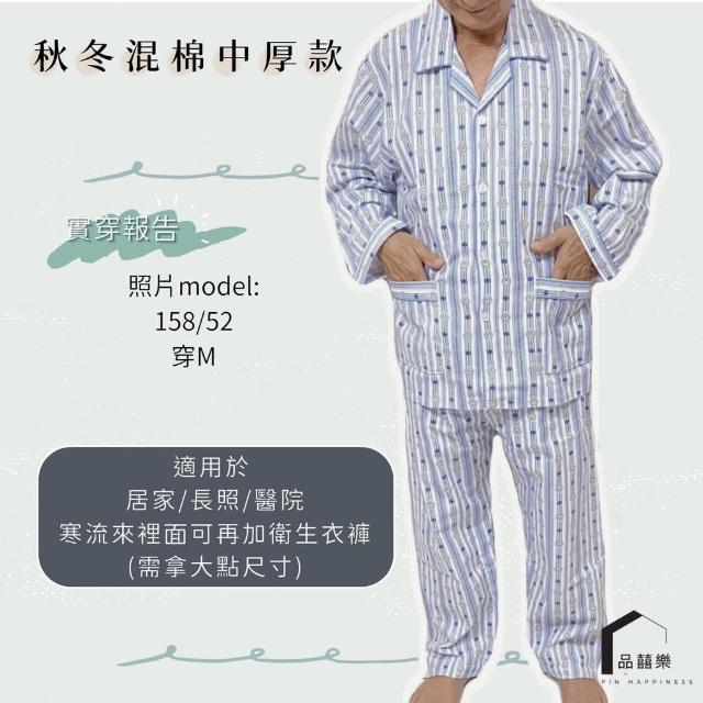 PIN HAPPINESS秋冬 台灣製男中厚長袖睡衣套裝(老人居家服 銀髮族睡衣 長照病房服)