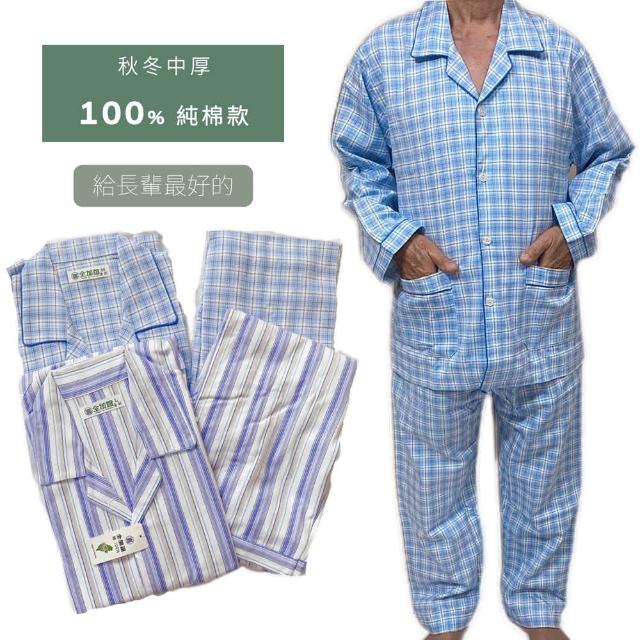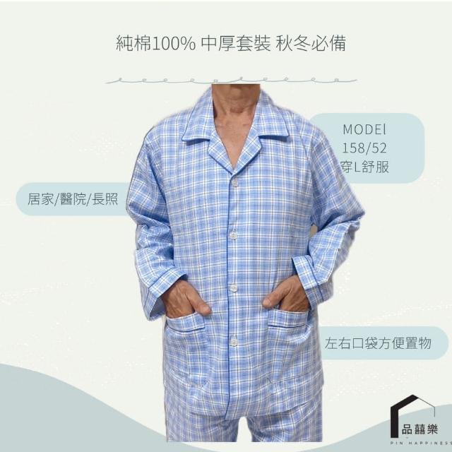 PIN HAPPINESS台灣製 100%純棉秋冬男中厚套裝 阿公睡衣(純棉睡衣套裝 銀髮族睡衣 中老年居家服)
