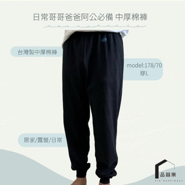 PIN HAPPINESS台灣製 秋冬 純棉中厚男居家褲 男棉褲 阿公褲(男睡褲 束口褲 男休閒褲)