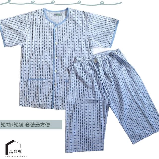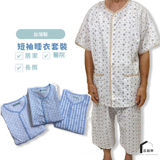 PIN HAPPINESSMIT台灣製 男短袖睡衣套裝 男睡衣(銀髮族睡衣 病人服 長照衣服)