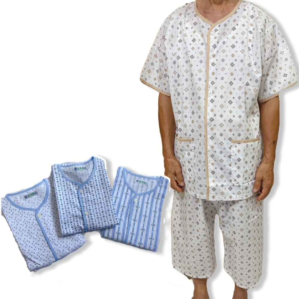 PIN HAPPINESSMIT台灣製 男短袖睡衣套裝 男睡衣(銀髮族睡衣 病人服 長照衣服)