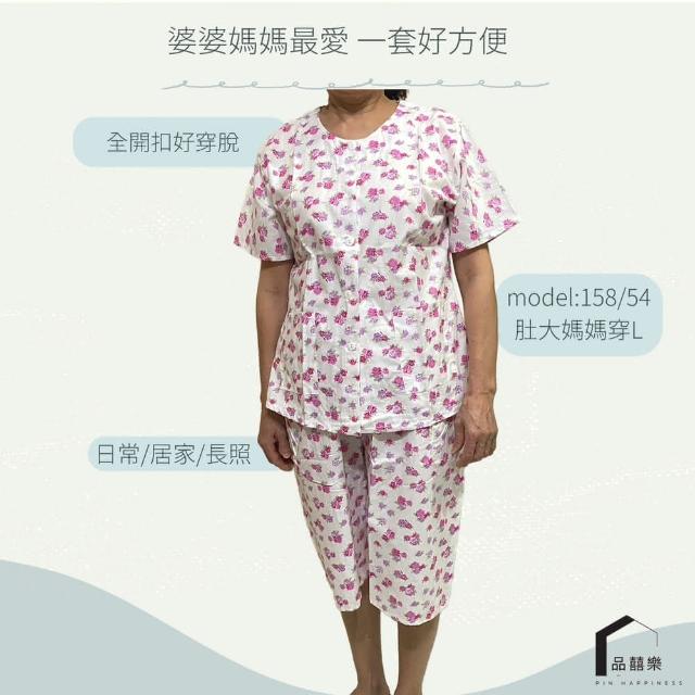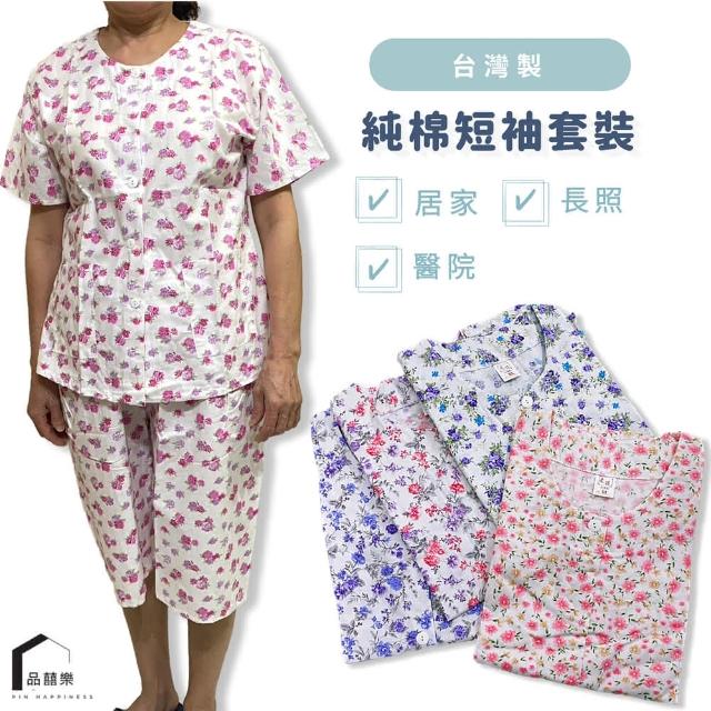 PIN HAPPINESSMIT台灣製 純棉女短袖套裝 女睡衣套裝(中老年樂齡銀髮族居家服 老人睡衣 照護衣物)