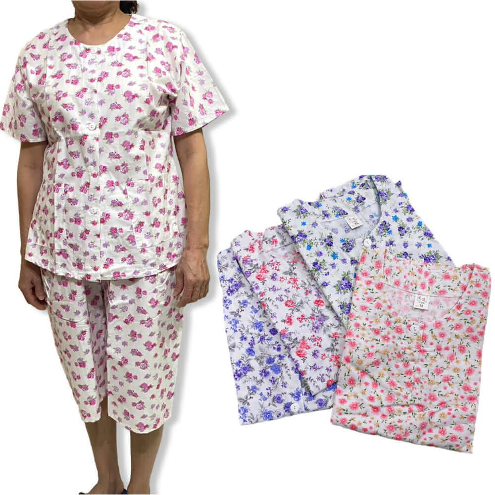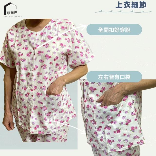 PIN HAPPINESSMIT台灣製 純棉女短袖套裝 女睡衣套裝(中老年樂齡銀髮族居家服 老人睡衣 照護衣物)