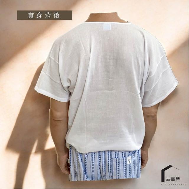 PIN HAPPINESSMIT台灣製麻紗短袖汗衫 麻紗上衣(阿公衣服 長輩衣服 銀髮族 老人上衣)