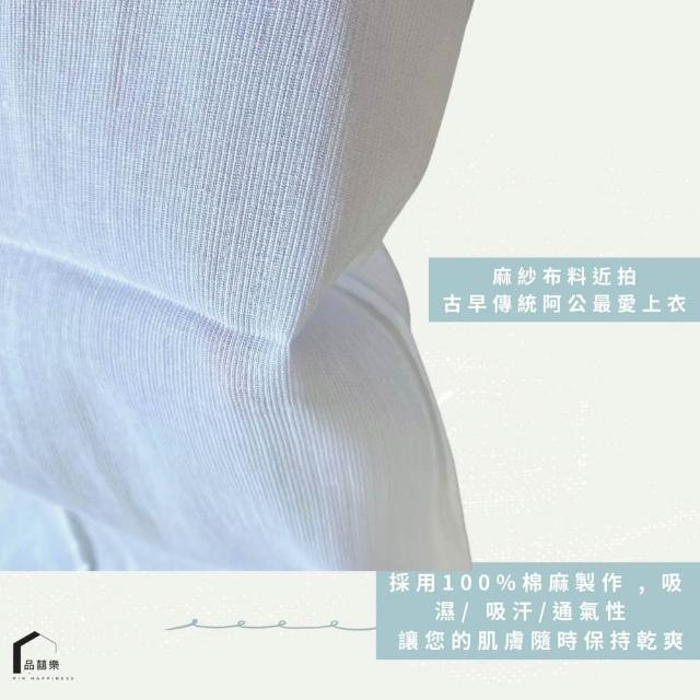 PIN HAPPINESSMIT台灣製麻紗短袖汗衫 麻紗上衣(阿公衣服 長輩衣服 銀髮族 老人上衣)
