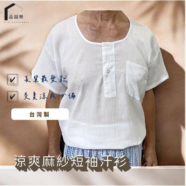 PIN HAPPINESSMIT台灣製麻紗短袖汗衫 麻紗上衣(阿公衣服 長輩衣服 銀髮族 老人上衣)