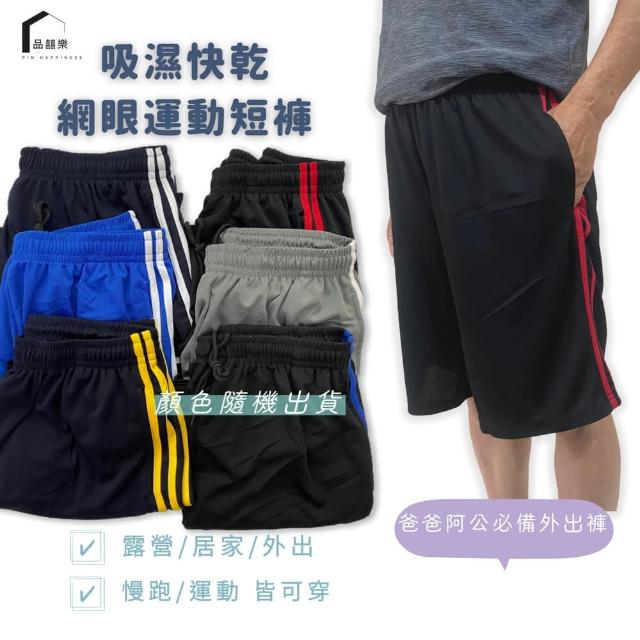 PIN HAPPINESS網眼男側邊兩線邊條運動短褲 吸濕排汗 男短褲(運動短褲男 爸爸短褲 阿公短褲)