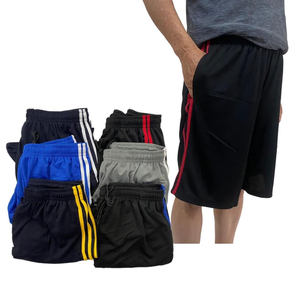PIN HAPPINESS網眼男側邊兩線邊條運動短褲 吸濕排汗 男短褲(運動短褲男 爸爸短褲 阿公短褲)