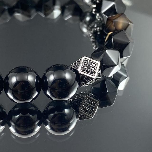 Lyon王者再臨//金運石 黑瑪瑙 烏金黑曜石//財富天下//男士水晶手鍊