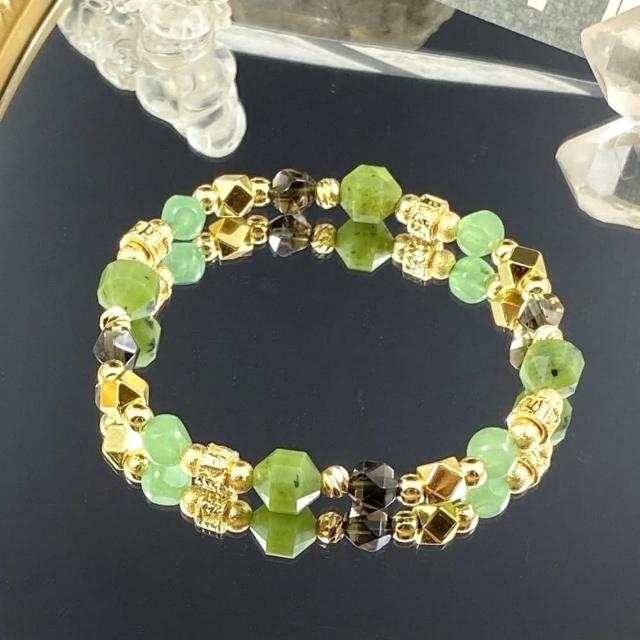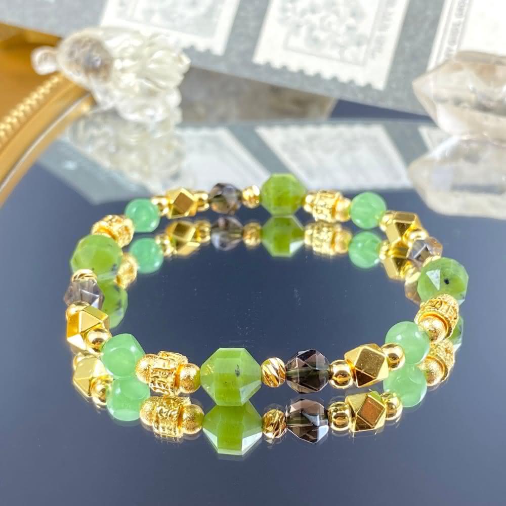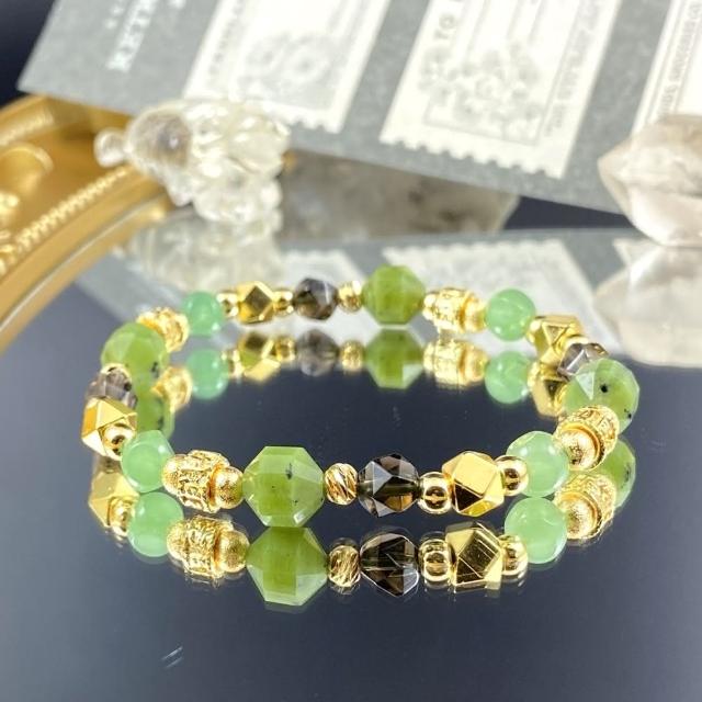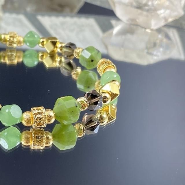 Lyon翡冷翠//加拿大碧玉 東陵玉 茶水晶//翠綠的光輝//女士水晶手鍊