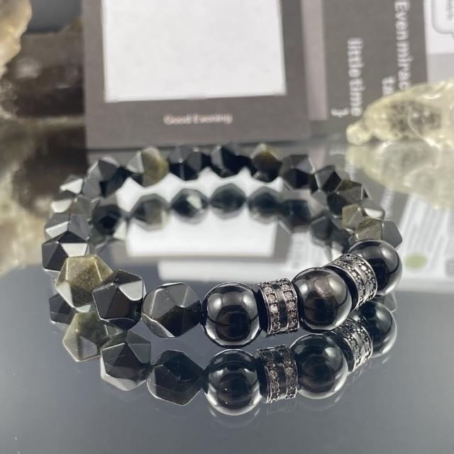 Lyon至尊//金運石 黑碧璽 金曜石//榮耀的傳奇//男士水晶手鍊
