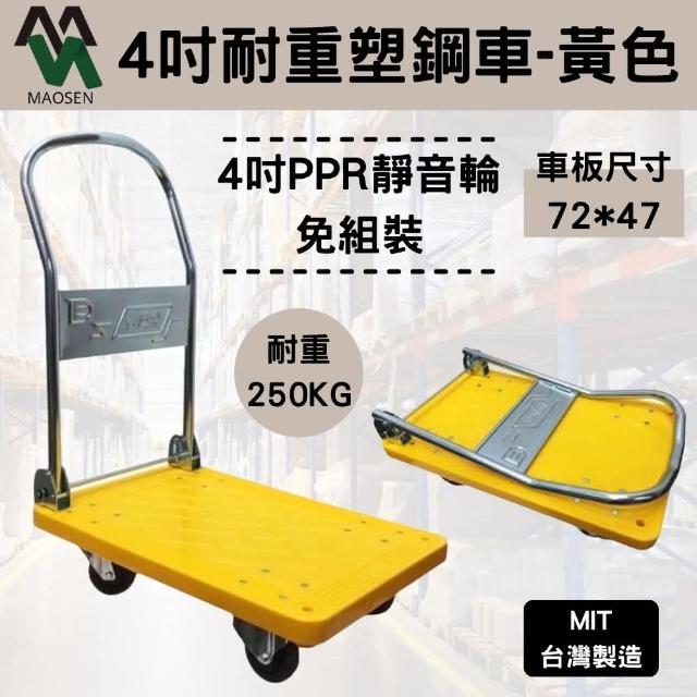 茂森 免運免安裝 MIT 4吋黃色250KG耐重塑鋼板車(靜音輪強化摺疊手推車)