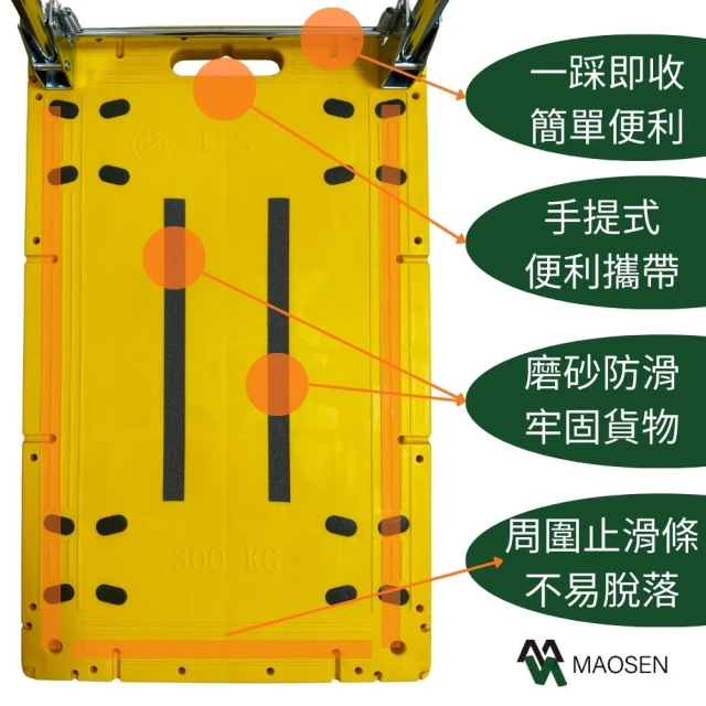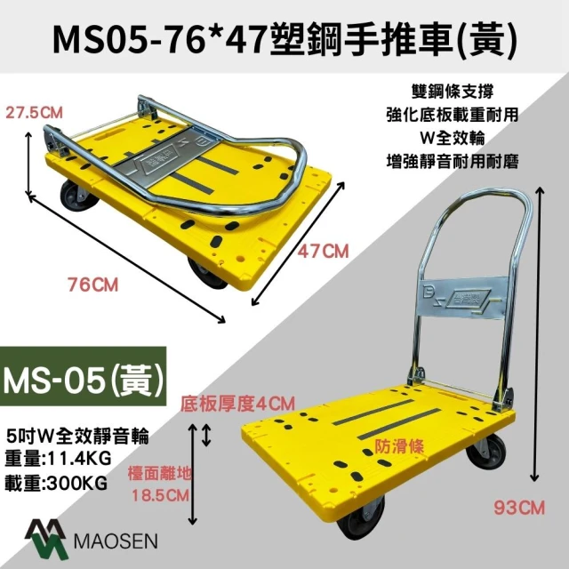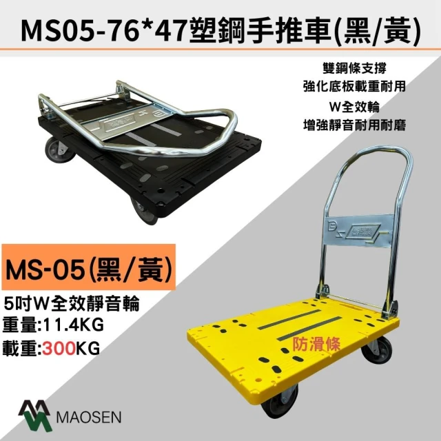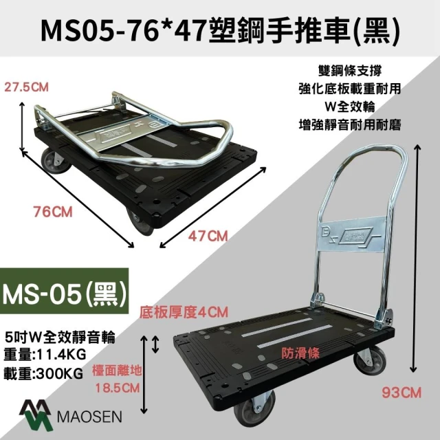 茂森 免運免安裝 MIT 5吋黑色 300KG 超耐重塑鋼板車(加大靜音輪強化鋼條摺疊手推車)
