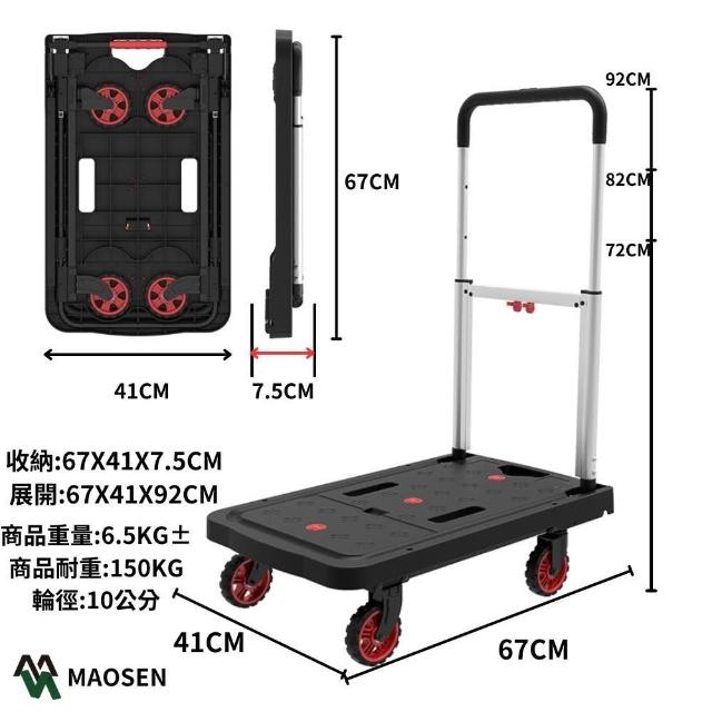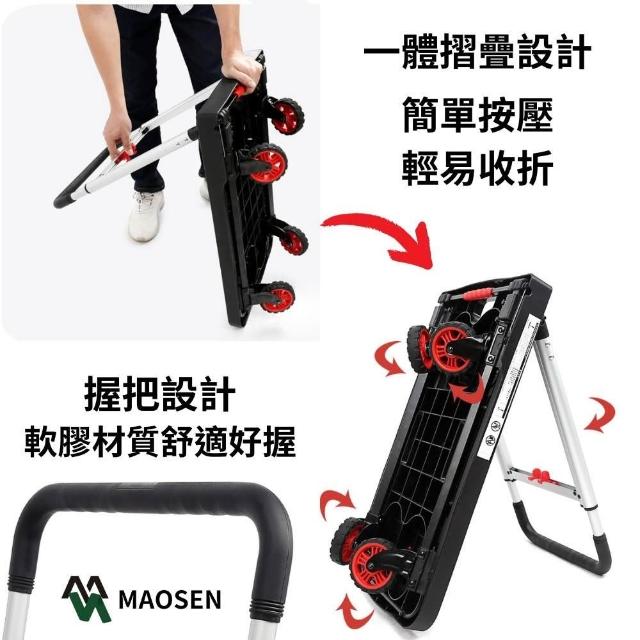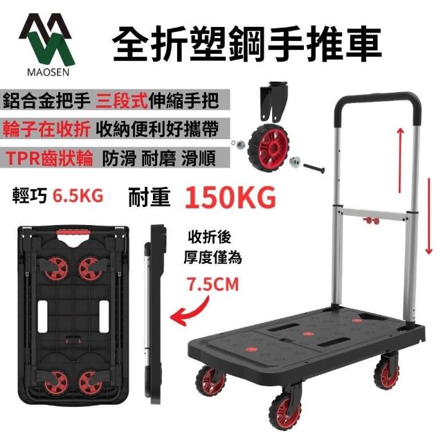 MAOSEN茂森 全收折塑鋼手推車 4吋TPR低躁輪 耐重150kg 折疊推車 收納推車 輕便推車 購物推車 摺疊推車