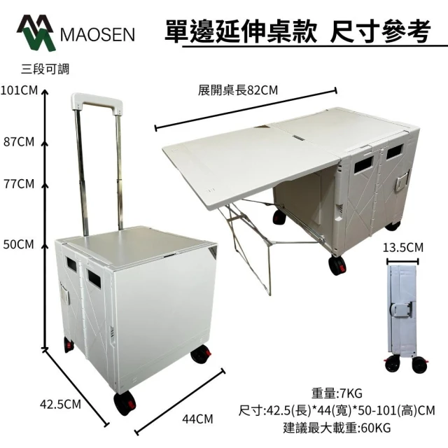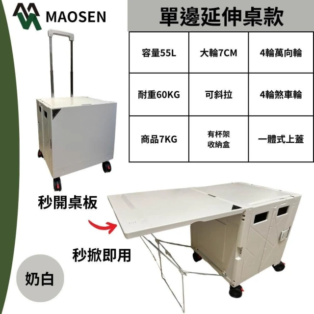 MAOSEN茂森 萬用折疊購物推車 單邊延伸桌 秒掀款55L(多功能好收納折疊購物車/折疊推車/收納推車/摺疊購物車)