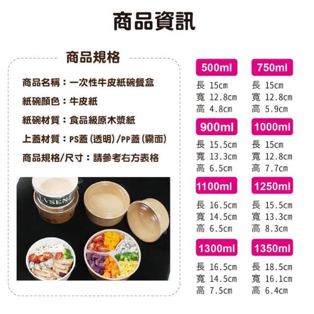 圓形牛皮紙碗打包餐盒 底+PP蓋一次性紙碗 一次性餐盒 外帶餐盒 餐碗 牛皮紙餐盒 打包盒 野餐盒