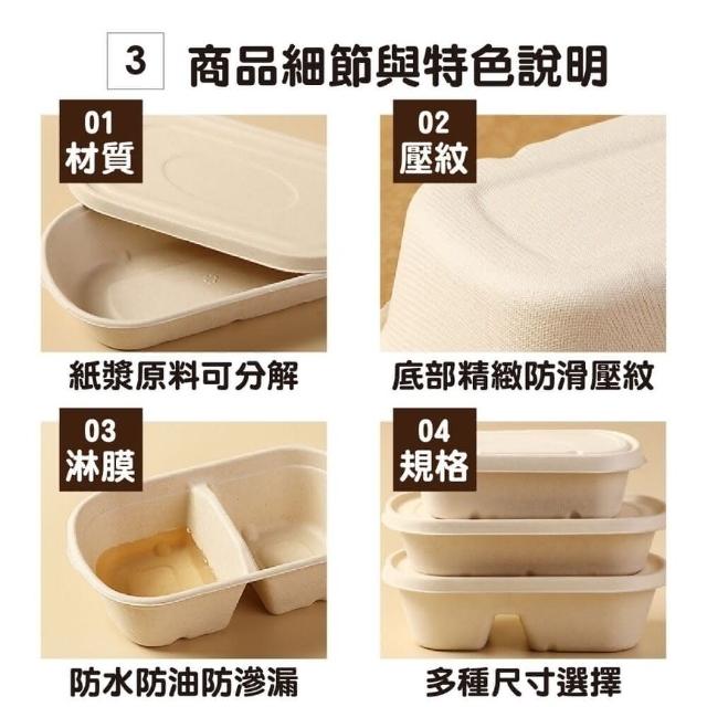 GIFTME5台灣出貨橢圓形環保紙漿餐盒-多入組加厚材質 打包便當盒 紙碗 防水防油防滲漏 多種尺寸 單格雙格 點心盒