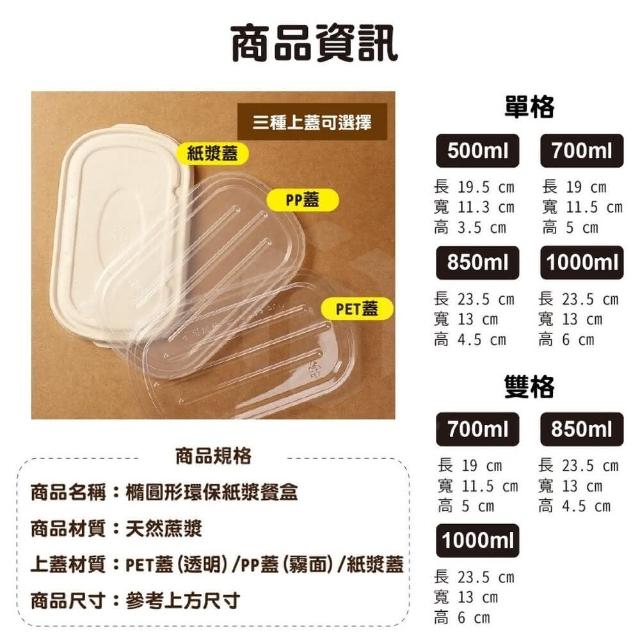 GIFTME5台灣出貨橢圓形環保紙漿餐盒-多入組加厚材質 打包便當盒 紙碗 防水防油防滲漏 多種尺寸 單格雙格 點心盒