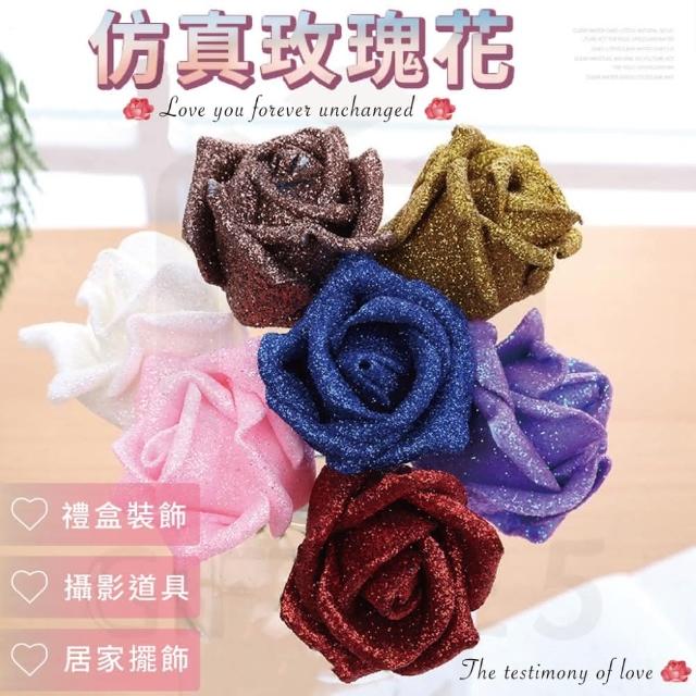金蔥仿真玫瑰花-10入花束材料 玫瑰花 生日禮物 情人節 擺飾 佈置 花束 裝飾花 人造玫瑰花