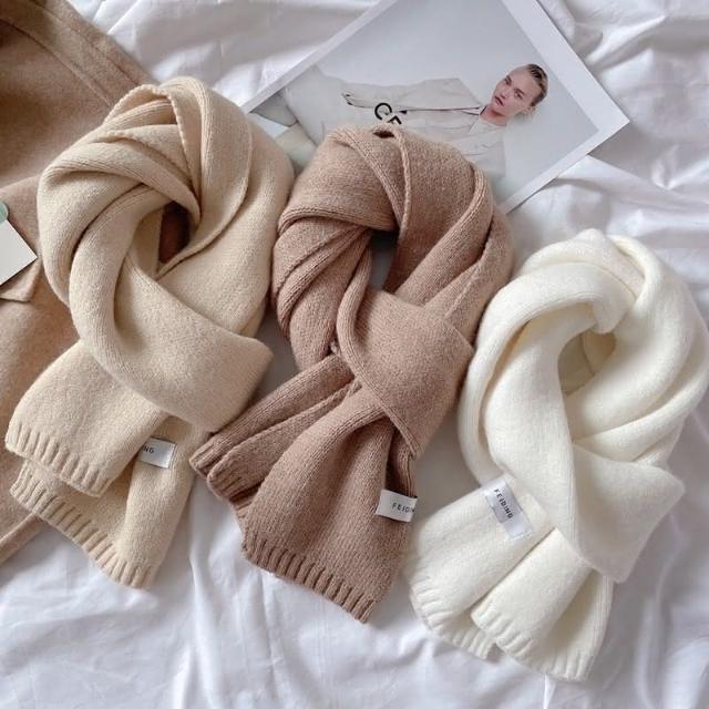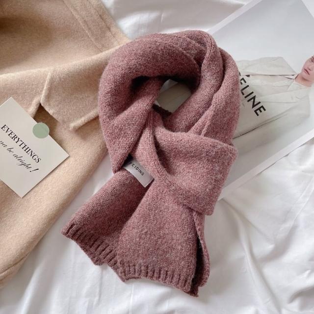 韓系針織圍巾針織毛線圍巾 男女圍巾 素色圍巾 短圍巾 保暖小圍巾 保暖素色圍巾