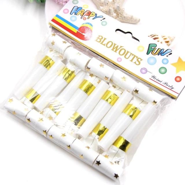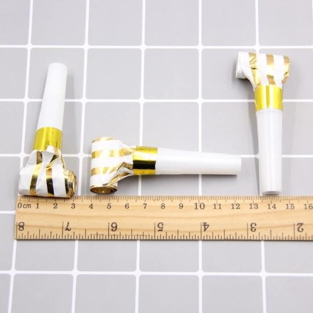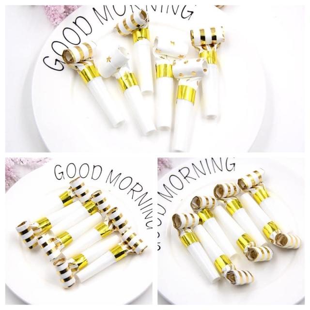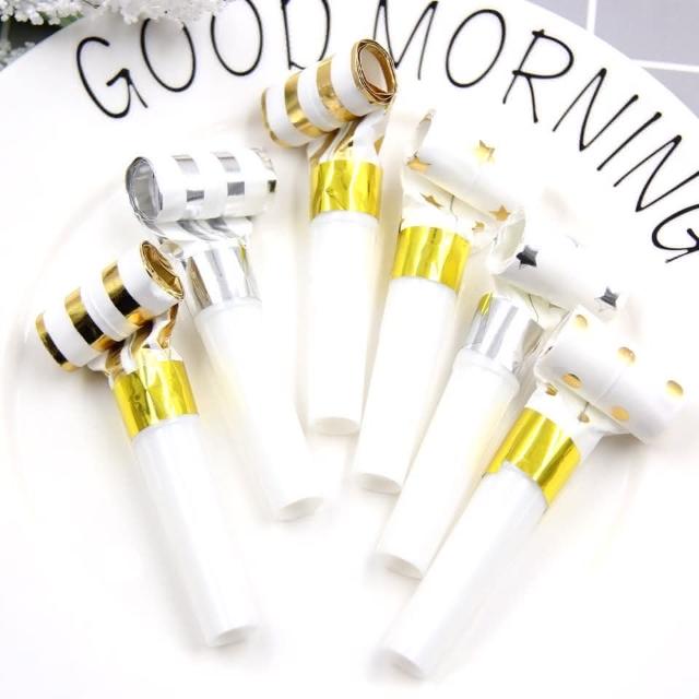 白色燙金派對哨子派對口哨 生日吹吹捲 吹笛 吹龍 慶生 派對小物 派對佈置 兒童