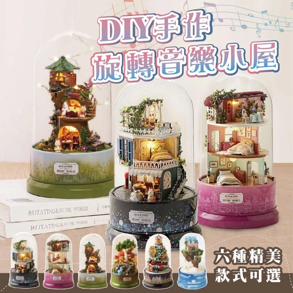 DIY手作旋轉音樂小屋帶罩 智趣屋 旋轉音樂世界 款式任選 DIY小屋 手作 袖珍屋 音樂盒 生日禮物 模型屋