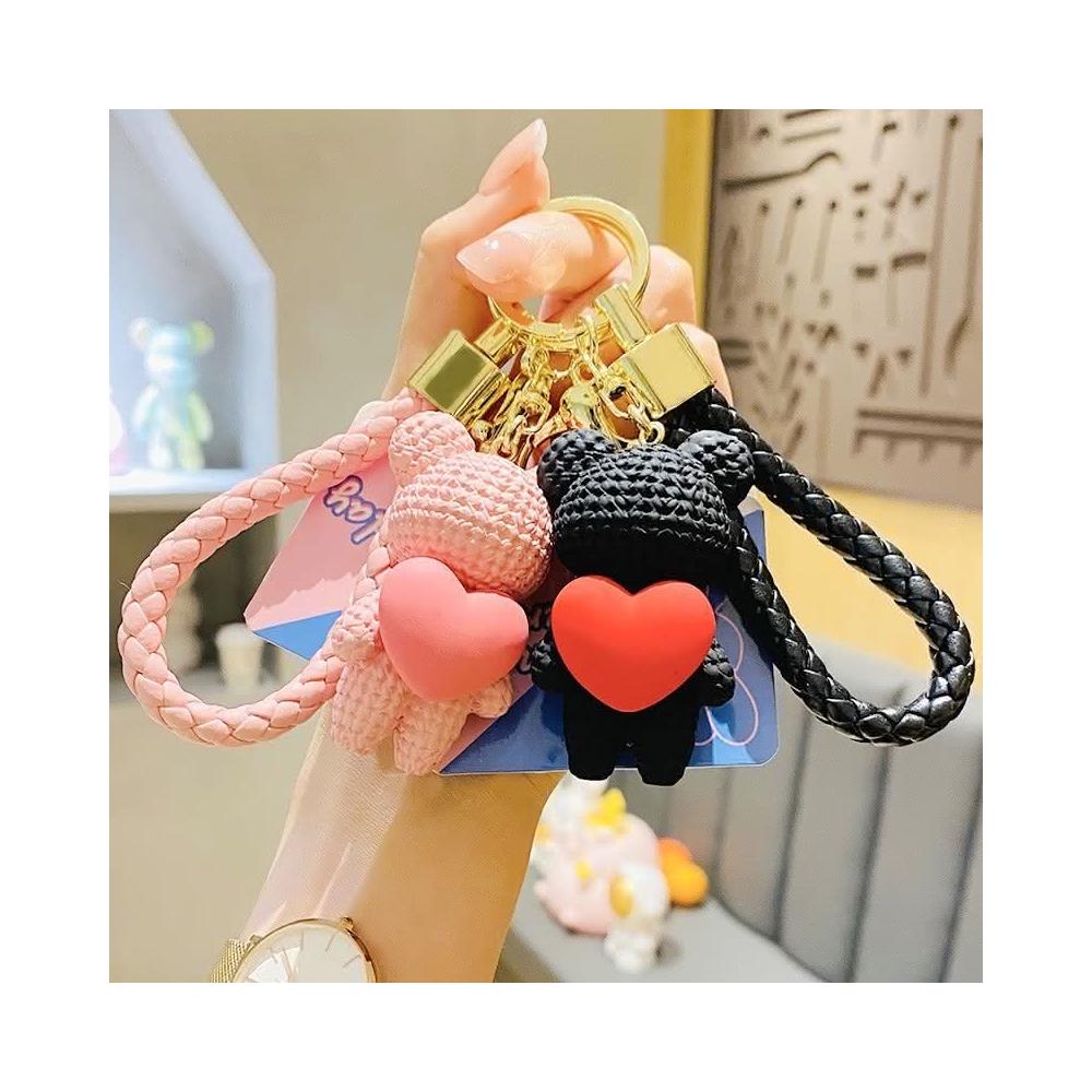 GIFTME5 小熊愛心鑰匙圈情侶吊飾 閨蜜 愛心編織熊 小禮物 包包掛件 掛飾 可愛吊飾 鑰匙扣