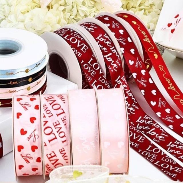 GIFTME5 情人節緞帶 英文字母緞帶 愛心緞帶 婚禮裝飾 蛋糕裝飾 禮盒包裝 絲帶 禮物包裝 花束包裝