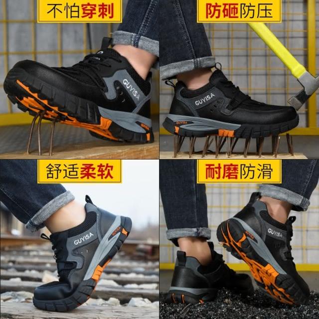 『新品免運』高品質牛皮安全鞋 工作鞋 鋼頭鞋 透氣減震工作鞋透氣安全防護鞋 防砸防刺穿轻便舒适耐磨/抗造工裝鞋1109