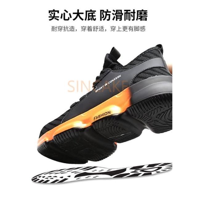 『現貨在台』輕便男女工作鞋 飛織透氣防臭勞保鞋 鋼頭鞋/橘色時尚防護鞋/防砸防撞/耐磨舒適 勞保鞋 工地時尚8875