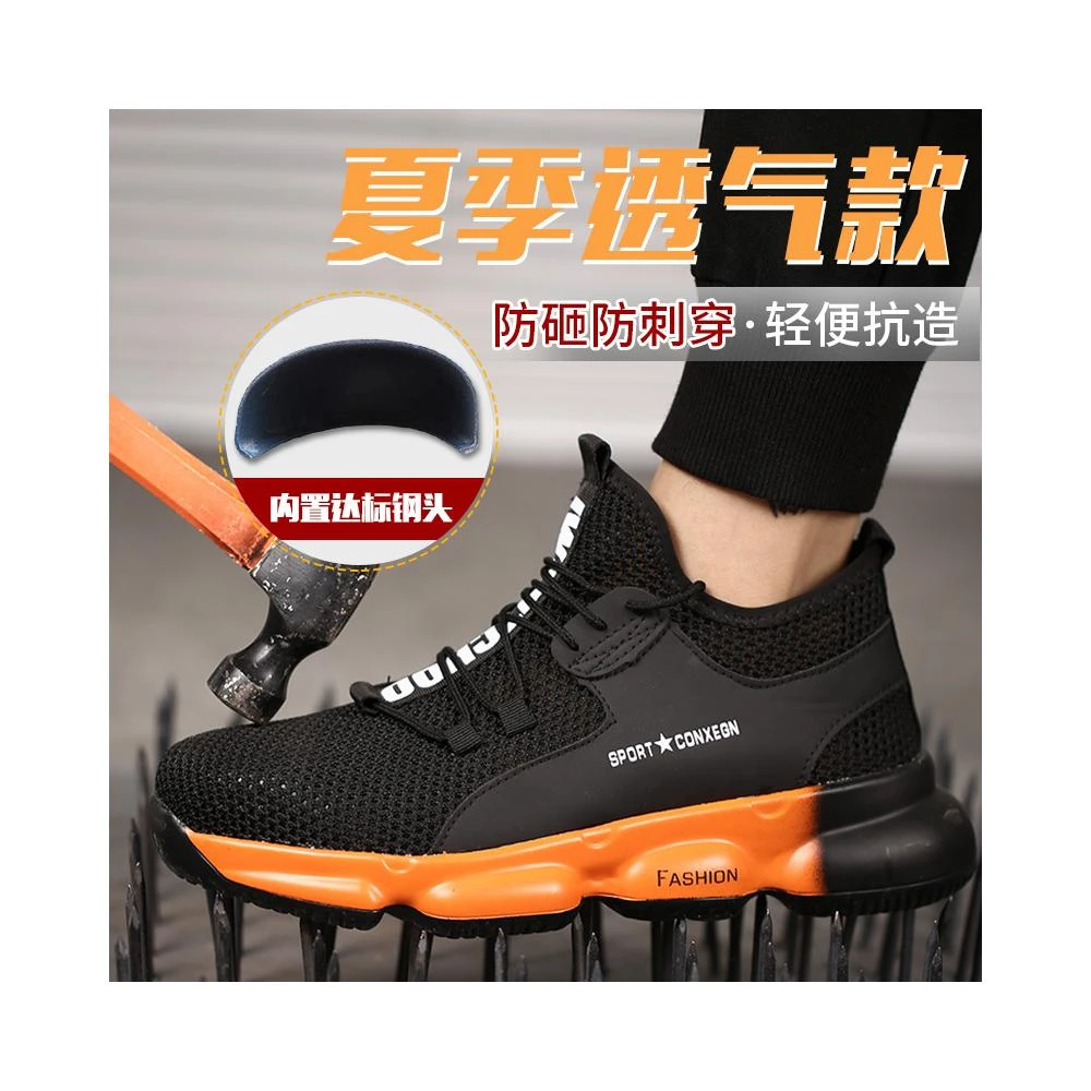 『現貨在台』輕便男女工作鞋 飛織透氣防臭勞保鞋 鋼頭鞋/橘色時尚防護鞋/防砸防撞/耐磨舒適 勞保鞋 工地時尚8875