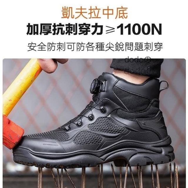 現貨速發 旋轉紐扣式安全鞋 高筒 防砸防刺穿 懶人工作鞋 免系鞋帶 鋼頭鞋 輕便防護鞋 耐磨工地鞋勞保鞋9195