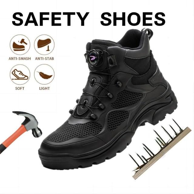 現貨速發 旋轉紐扣式安全鞋 高筒 防砸防刺穿 懶人工作鞋 免系鞋帶 鋼頭鞋 輕便防護鞋 耐磨工地鞋勞保鞋9195