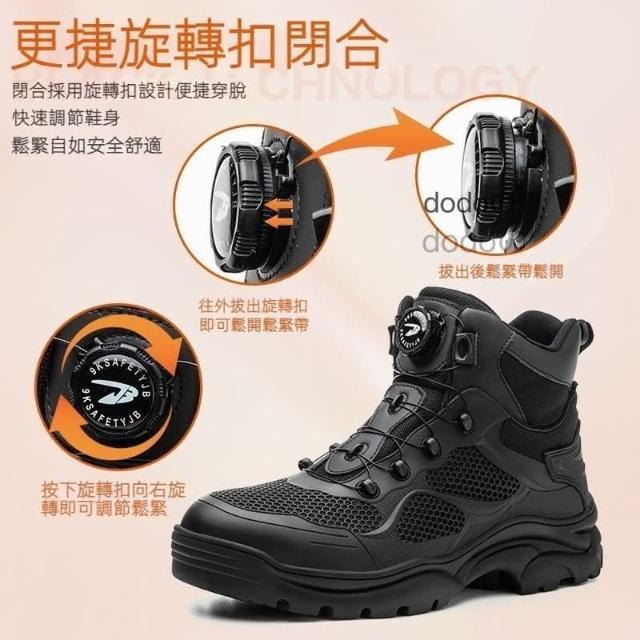 現貨速發 旋轉紐扣式安全鞋 高筒 防砸防刺穿 懶人工作鞋 免系鞋帶 鋼頭鞋 輕便防護鞋 耐磨工地鞋勞保鞋9195