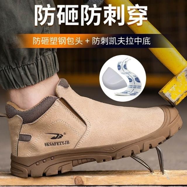 現貨🔥特惠!!低價清倉🔥反絨面輕便塑鋼安全鞋 工作鞋 電焊鞋 絕緣耐火花防濺 防砸防刺穿 一腳蹬工地鞋 免綁鞋帶 防護鞋
