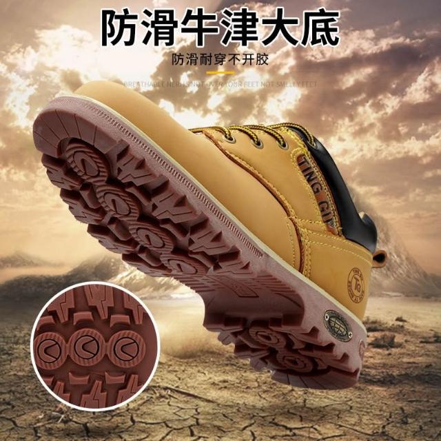 現貨『特惠!!低價清倉』高筒/低筒安全靴 防水牛皮工作鞋 鋼頭鞋 透氣減震工作鞋 高帮工靴黄色牛筋底防砸高筒半靴安全作训靴