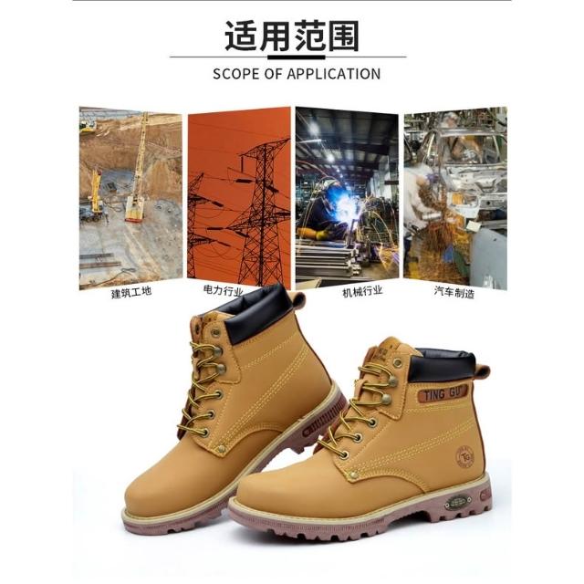 現貨『特惠!!低價清倉』高筒/低筒安全靴 防水牛皮工作鞋 鋼頭鞋 透氣減震工作鞋 高帮工靴黄色牛筋底防砸高筒半靴安全作训靴