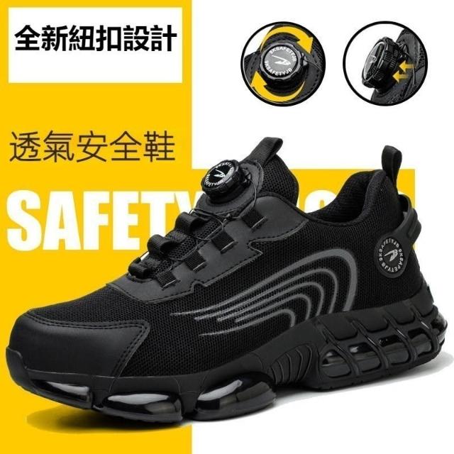 免運🔥特惠!!低價清倉🔥 輕便旋轉紐扣式安全鞋 懶人免綁鞋帶 工作鞋 防砸防刺穿 鋼頭鞋 緩震氣墊底 抗造防滑耐磨工地靴262