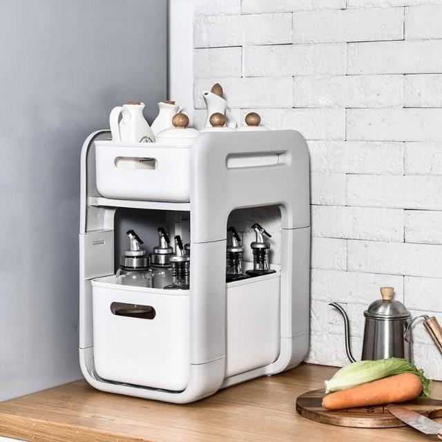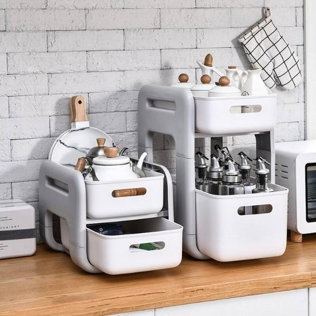 『現貨速發』廚房置物架 台面抽屜調料架 雙層收納櫃 下水槽抽屜 浴室洗漱用品收納架