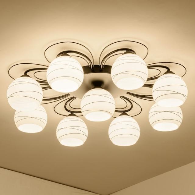 C6036-8+1(客廳燈具.9燈半吸頂.線條玻璃半吸頂燈)
