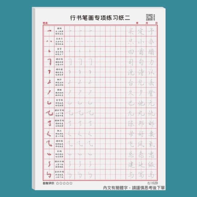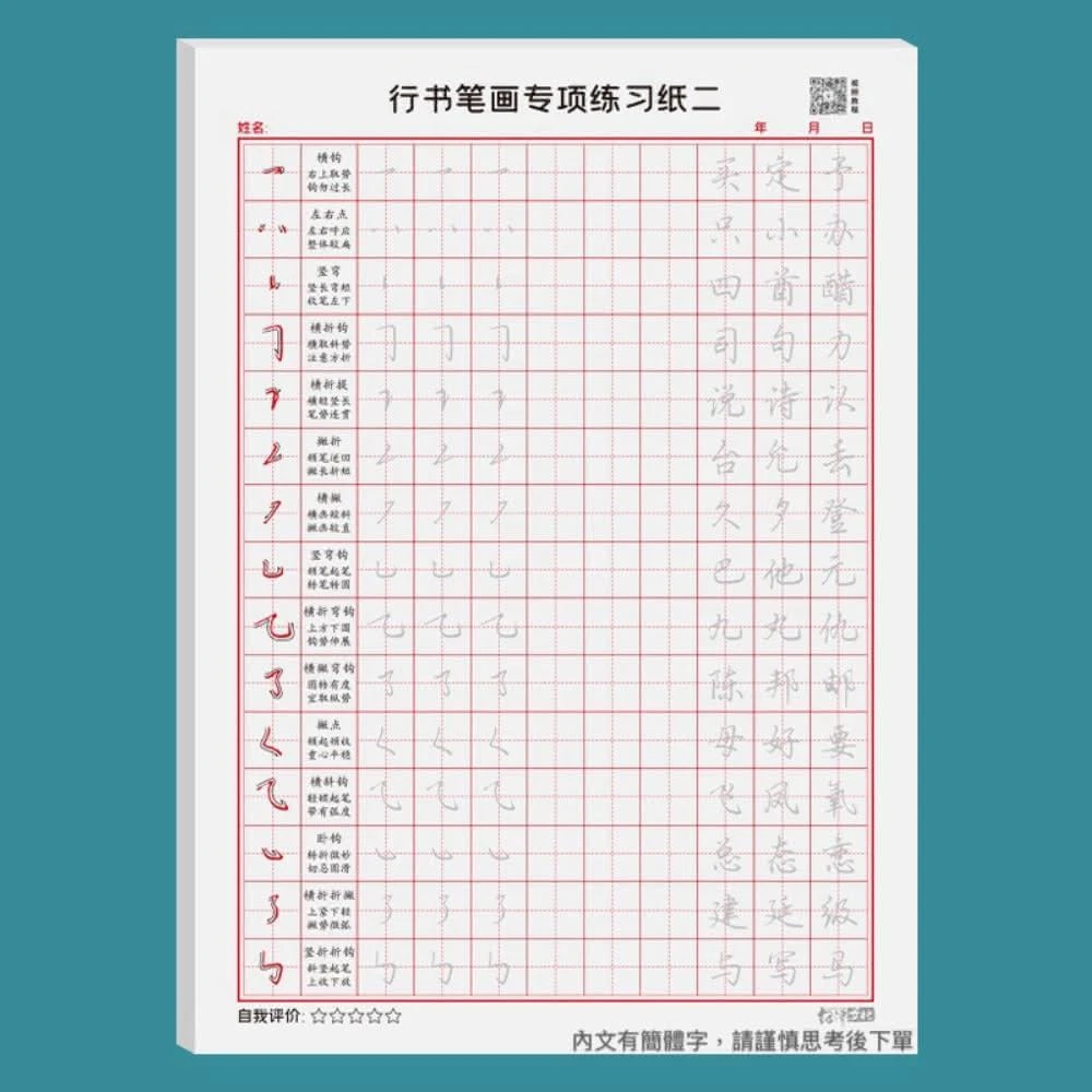 行書筆畫練習 基礎筆畫 行書筆劃專項練字本二 行書筆劃 硬筆書法 鋼筆練習