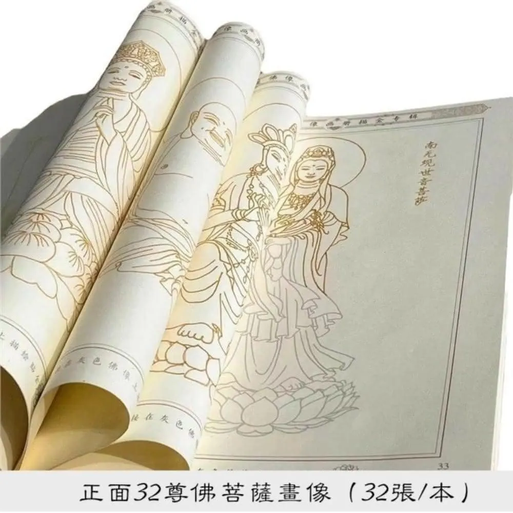 佛像畫冊 32尊菩薩佛像描金畫冊 活頁 手描佛像 臨摹繪本 描金畫冊 佛像臨摹