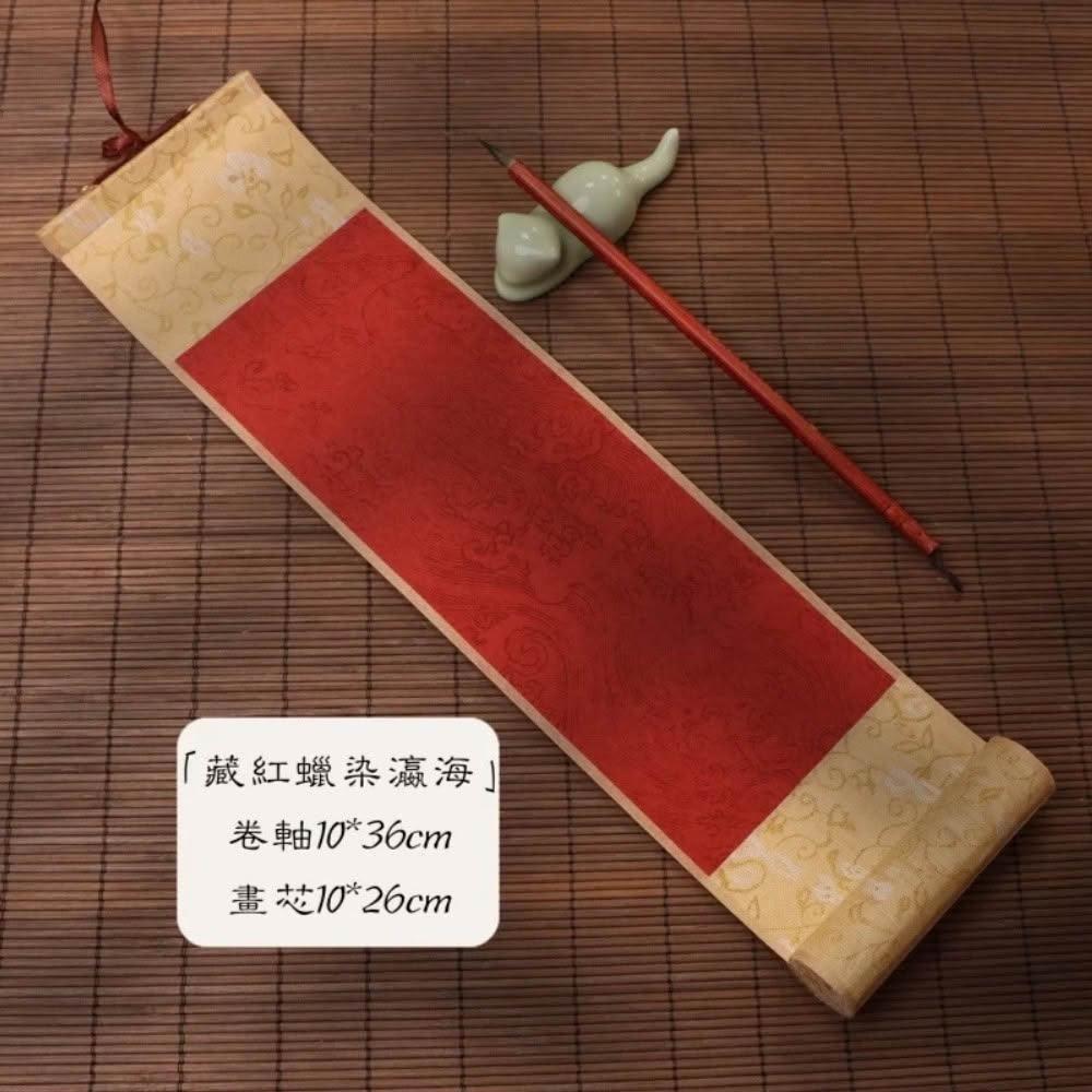 迷你小掛軸 小號卷軸 古風毛筆手寫書畫 10*36CM 蠟染空白迷你小卷軸 半生熟宣 禪意書法小掛軸
