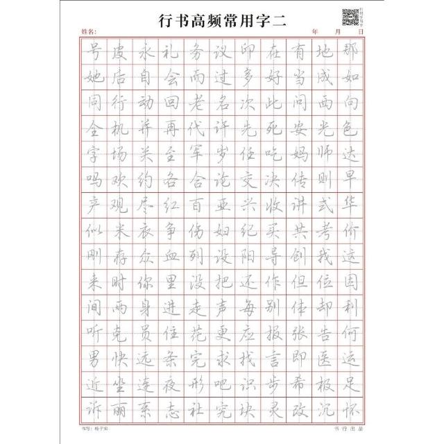 行書高頻常用字練字本 硬筆行書 專項練字帖 常用字 田格 成人臨摹字帖 兒童練字本 初學者 鋼筆書法