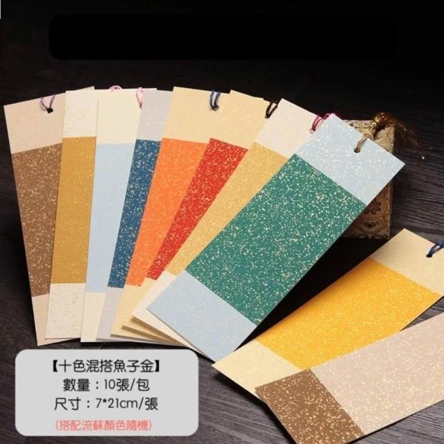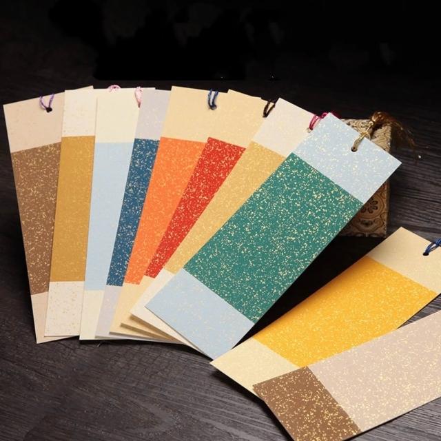 現貨古風書籤 宣紙書籤 書籤 文創 空白DIY書籤 半生熟蠟染紙卡 附流蘇 萬年紅 灑金 鎏金 書法專用