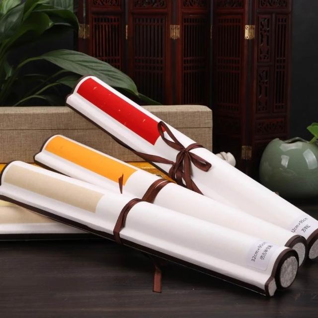 空白書法畫軸 宣紙卷軸 掛軸 立軸 毛筆書法繪畫 半生熟宣紙 精裝綾布裝裱掛軸 台灣出貨 書法練習 字畫裝飾 臨摹推薦