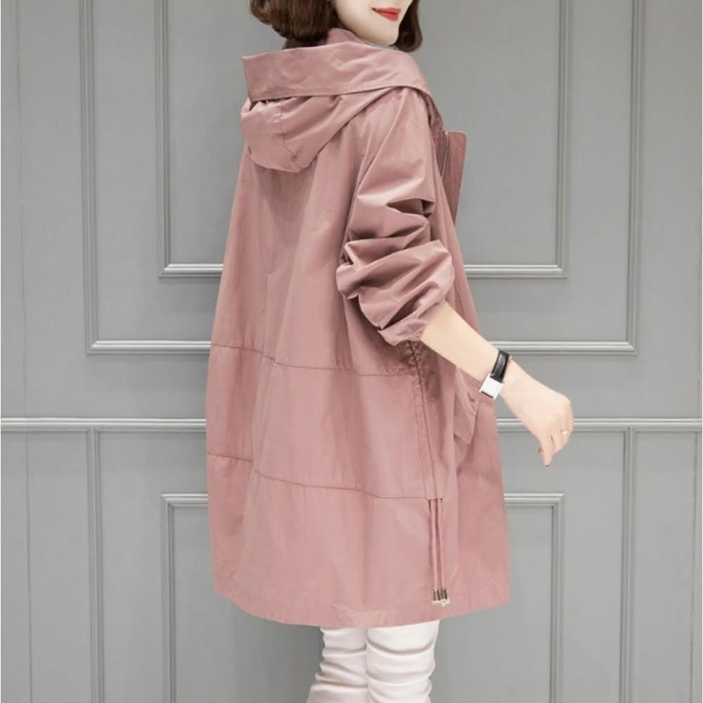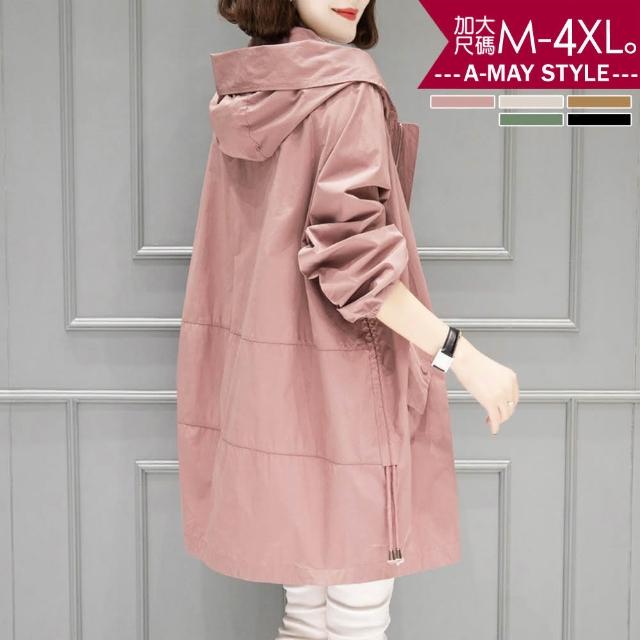 Amay Style 艾美時尚免運 中大尺碼女裝 休閒外套 輕薄連帽抽繩中長版風衣。M-4XL(5色.現貨+預購)