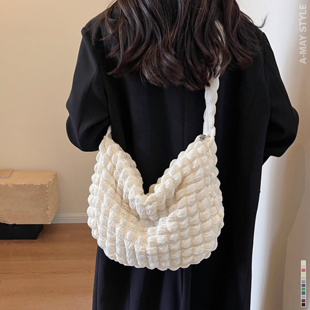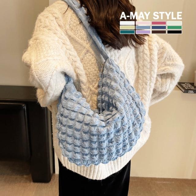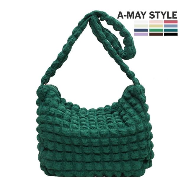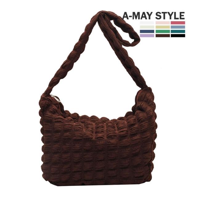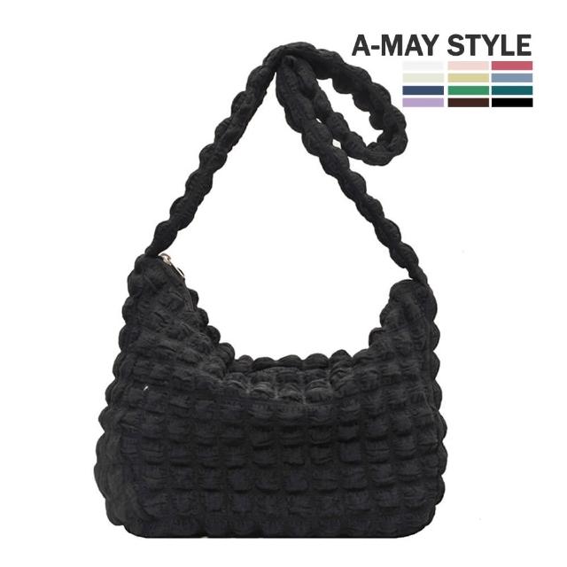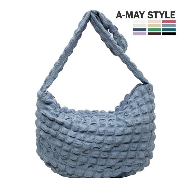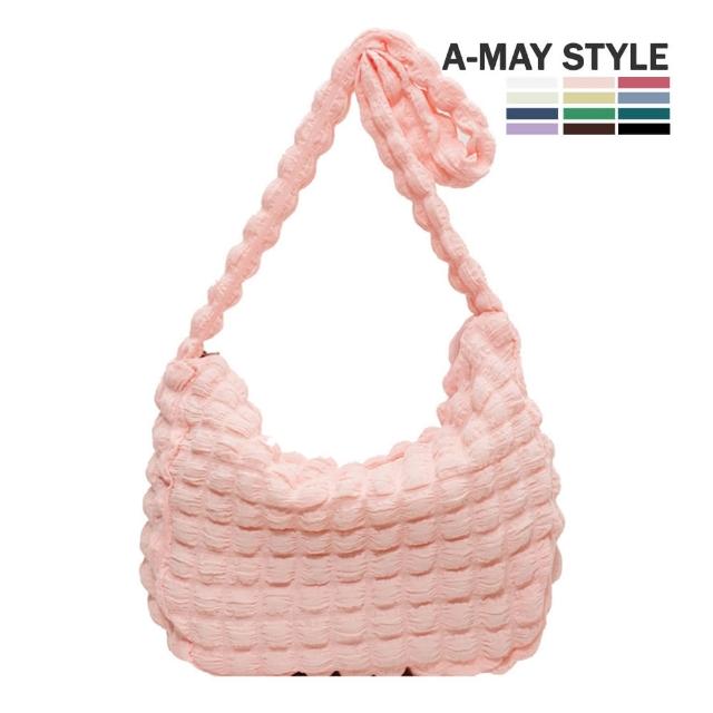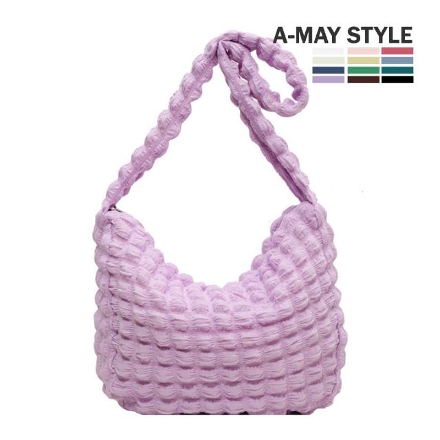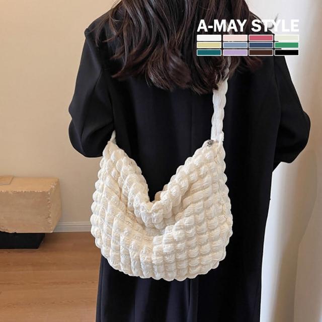 Amay Style 艾美時尚女包 雲朵包 側肩包 斜背包 時尚日韓設計大容量泡泡皺褶雲朵肩背包(12色.現貨+預購)