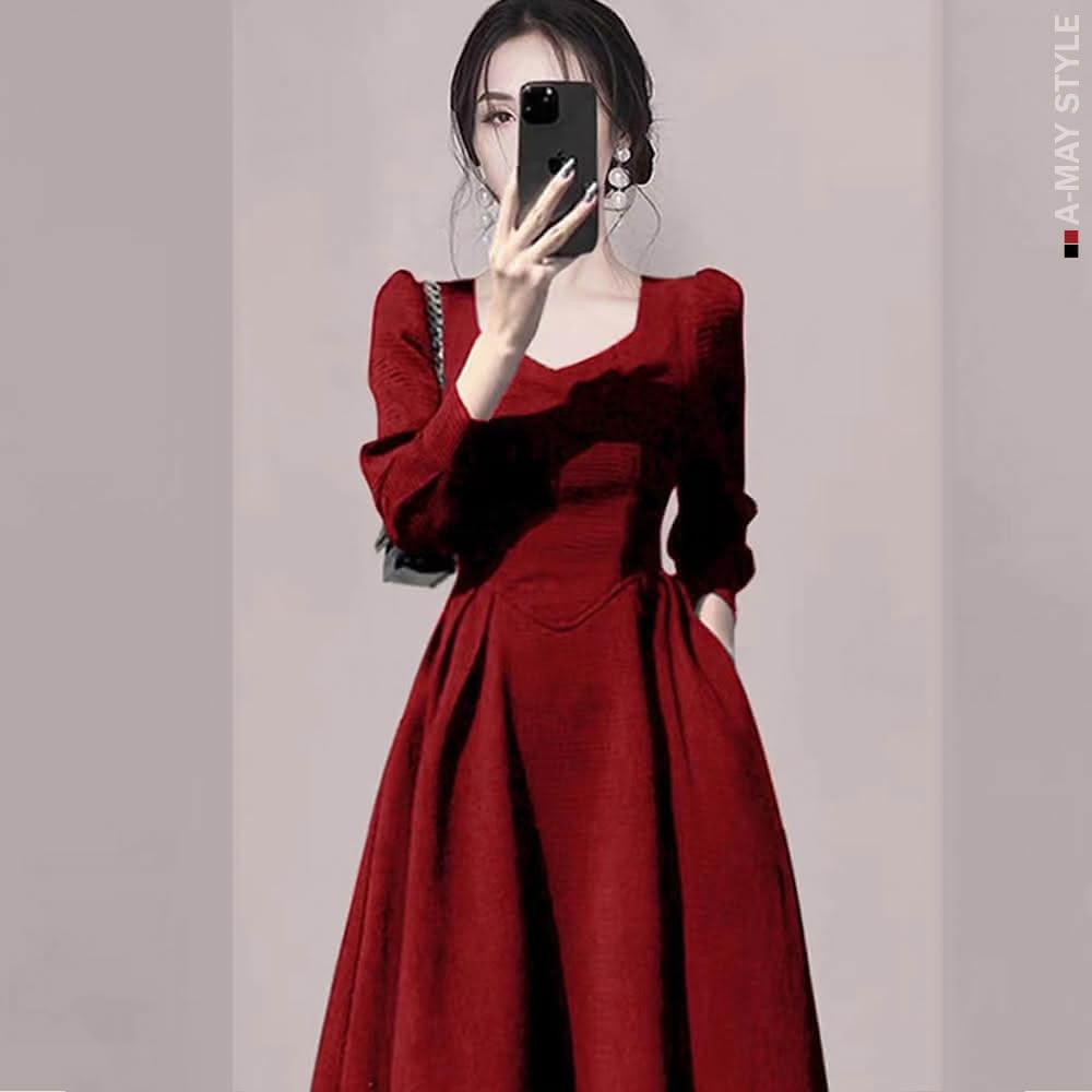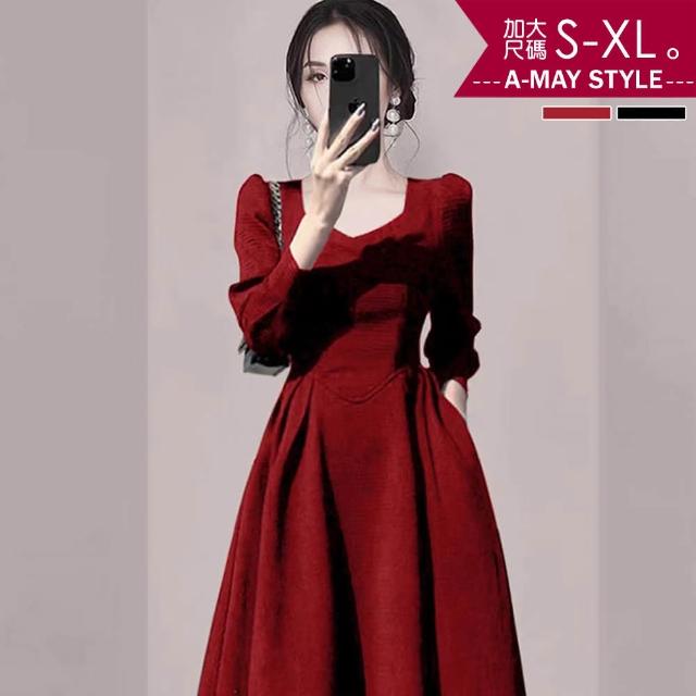 Amay Style 艾美時尚中大尺碼女裝 洋裝 禮服 時尚優雅方領設計顯瘦連身洋裝。S-XL(2色.預購)