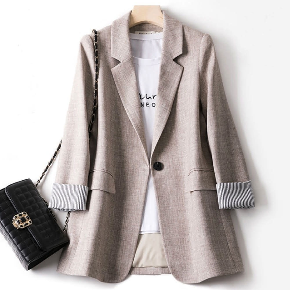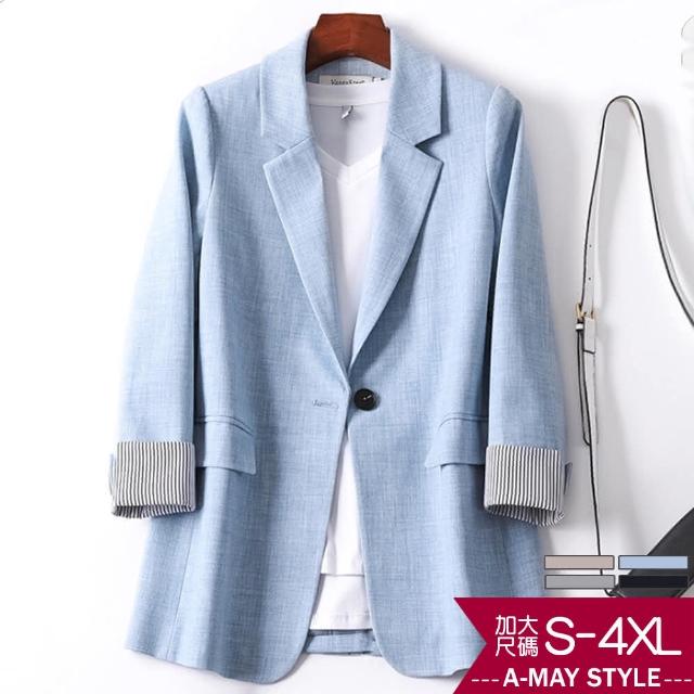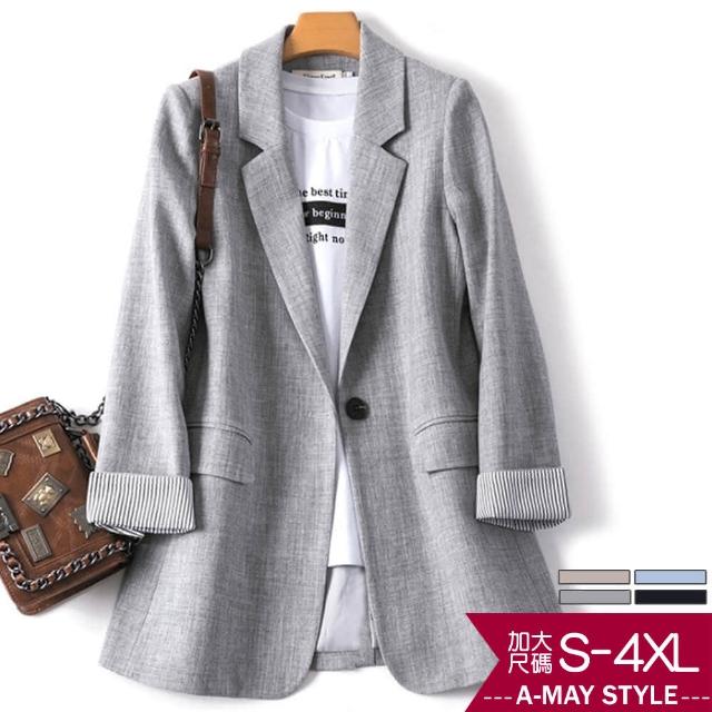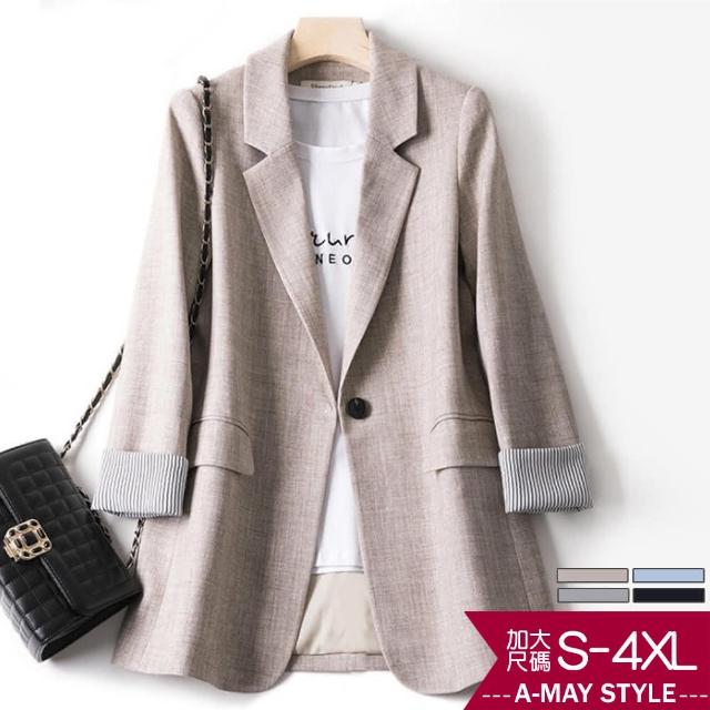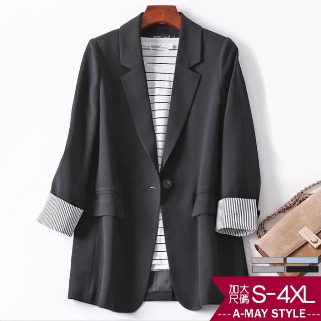 艾美時尚免運 中大尺碼女裝 西服 時髦感拼接修身長版西裝外套。 S-4XL(4色.現貨+預購)